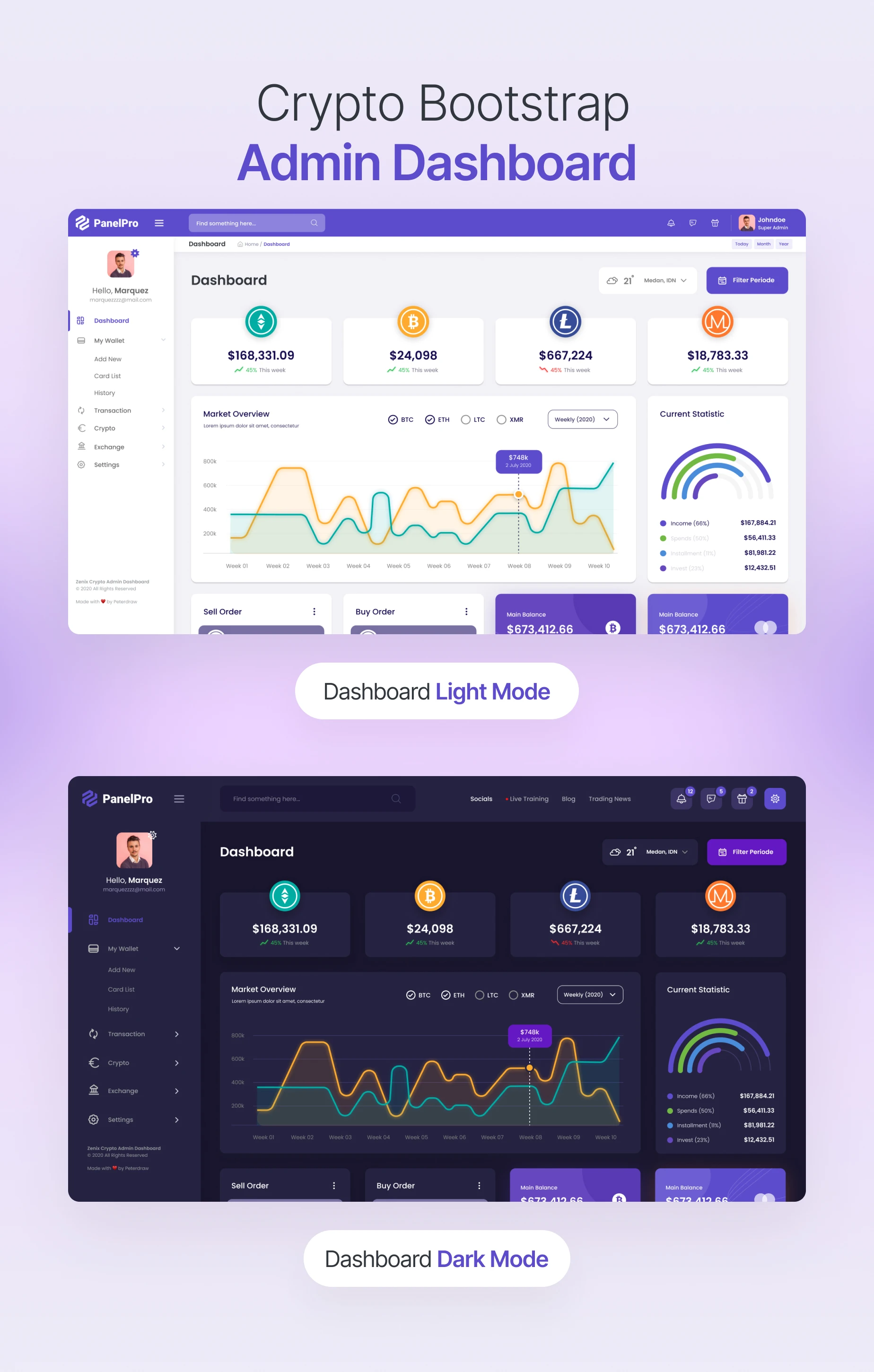 Dark and Light Mode Enhance user comfort and reduce eye strain with our admin template’s dynamic dark and light modes. Whether users prefer a sleek dark interface for a modern feel or a classic light mode, they can easily switch between the two modes based on their preference and environment.